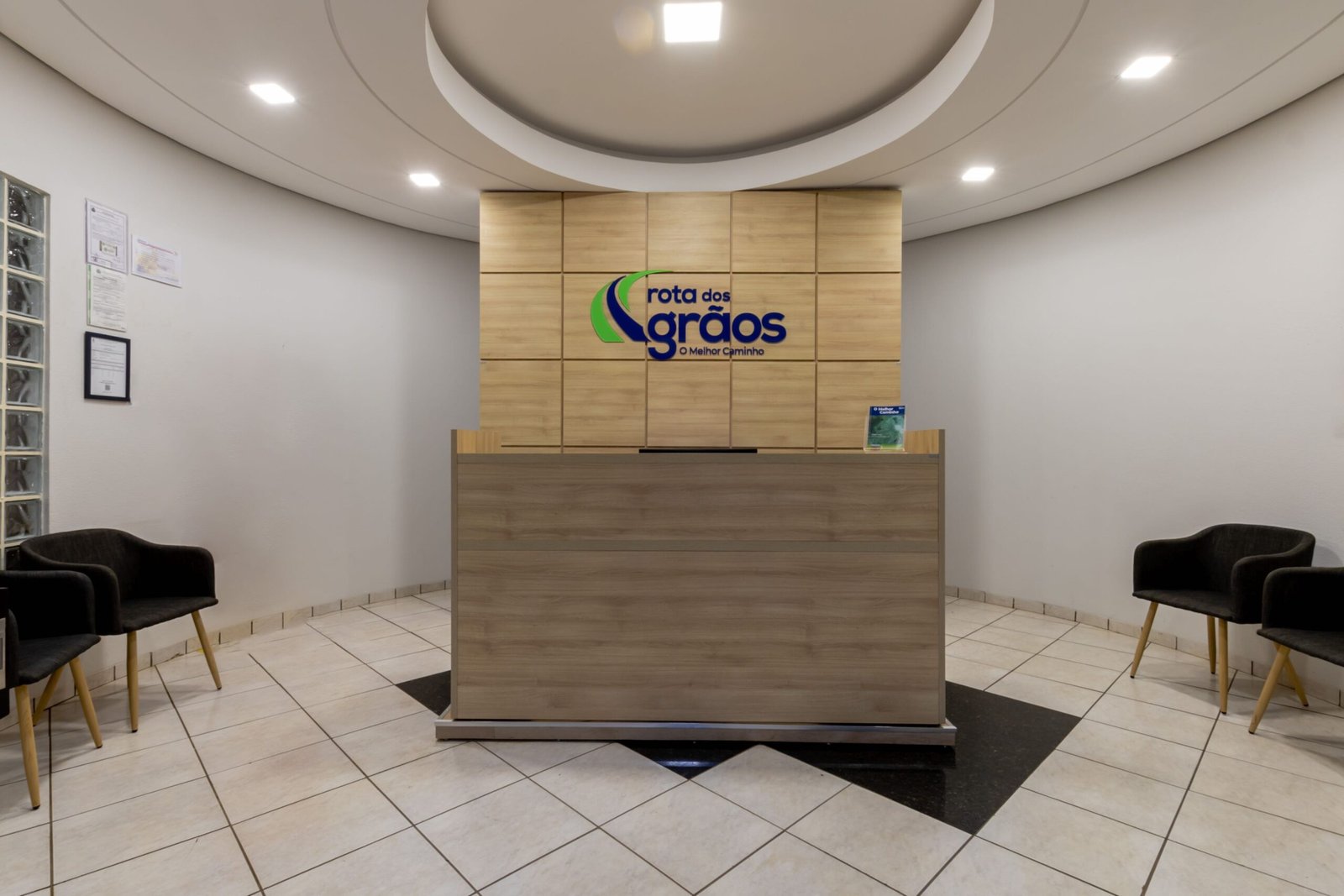 ROTA DOS GRÃOS Para o projeto desta concessionaria rodoviária a premissa foi funcionalidade, para acomodar mais de 50 funcionários, pensamos em soluções ergonômicas e praticas, sem deixar de aliar a estética.